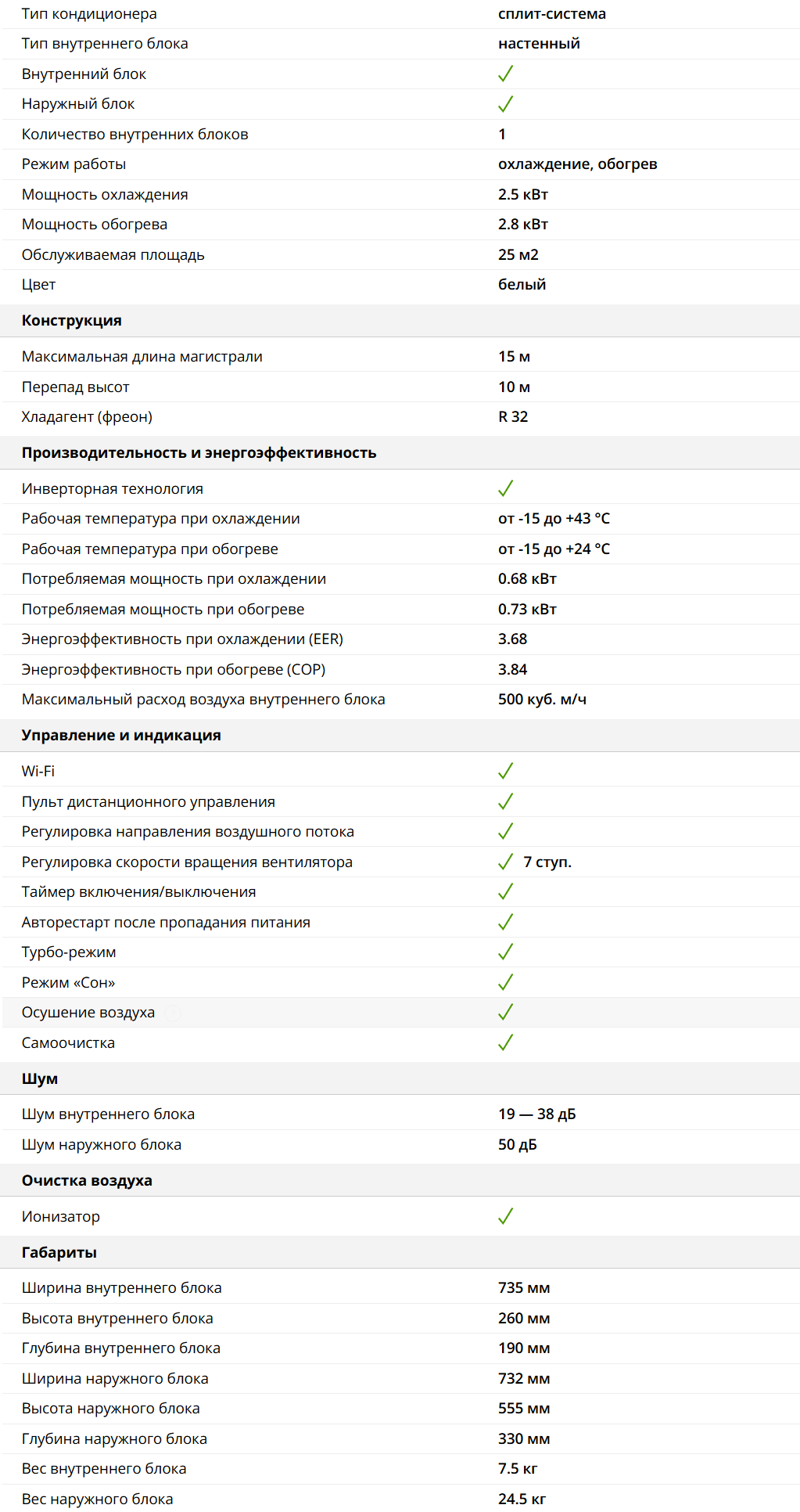 ✅ Fulldс инвертор для эффективного и экономичного охлаждения и обогрева.