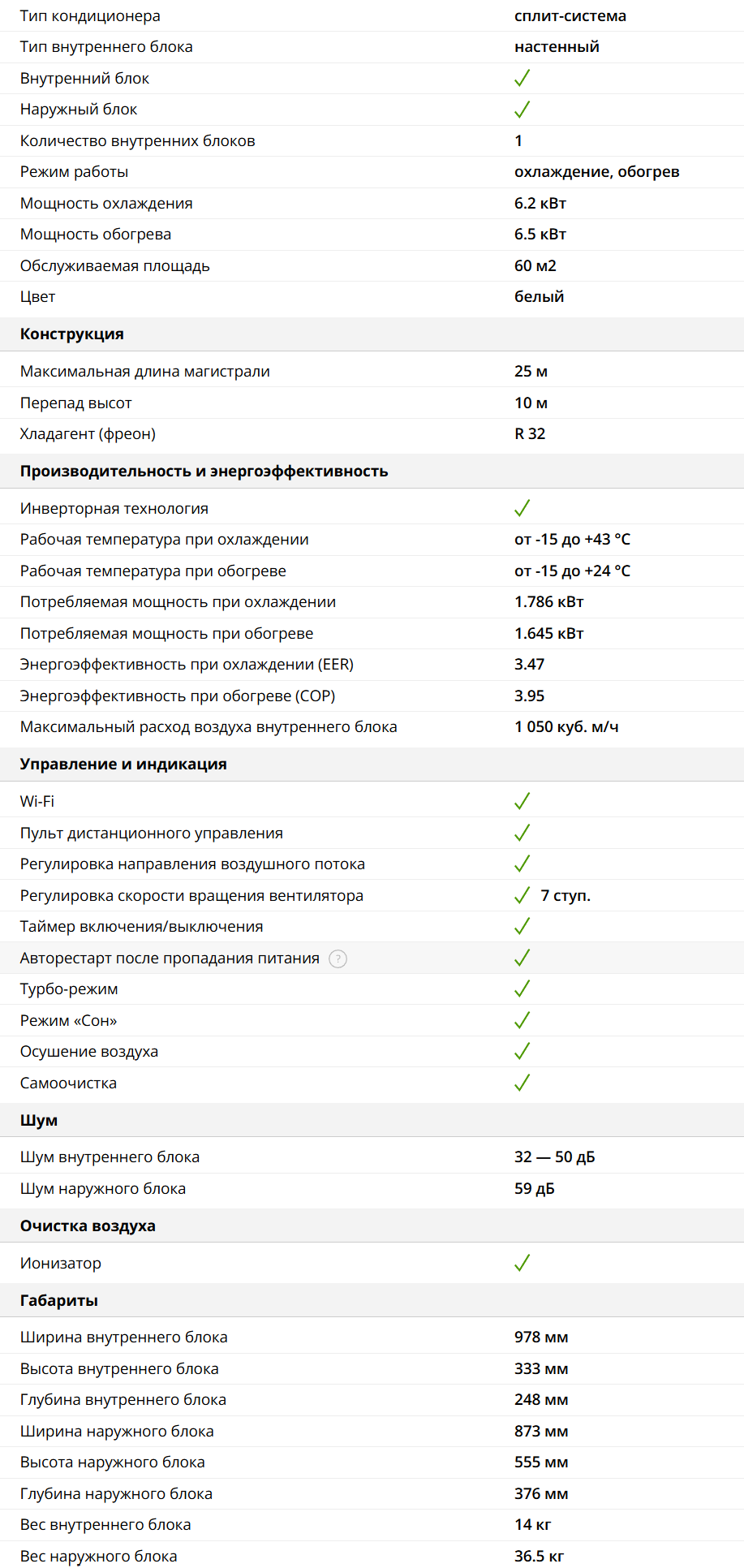✅ Fulldс инвертор для эффективного и экономичного охлаждения и обогрева.